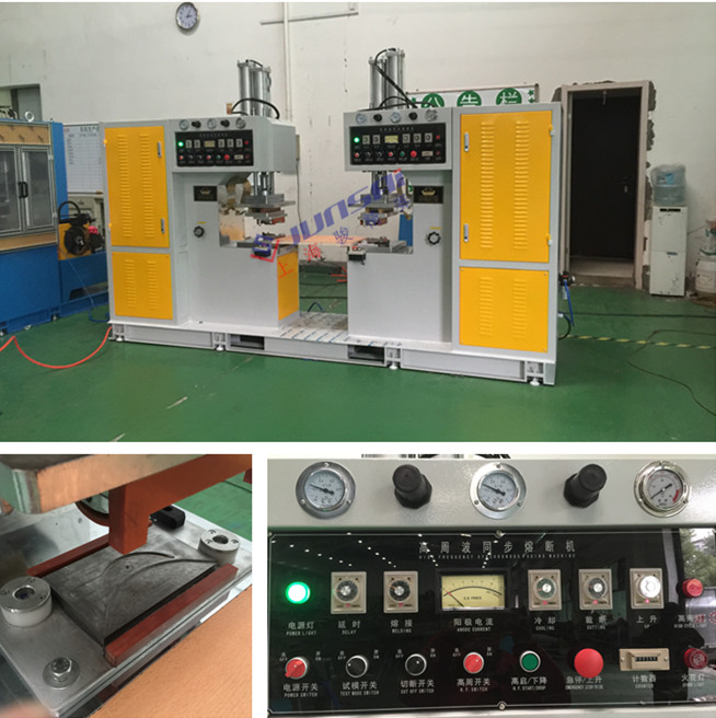 高周波熔斷機廣泛用于吸塑卡紙包裝、PVC、PETG、GAG、EVA、PEVA、TPU、PU合成革材料等均可同時完成熔接及切斷之作業(yè)!既在同一次加工中,一次完成熔接及切斷作業(yè)。