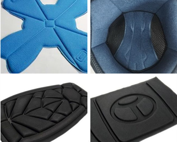 常見的海綿、EVA、XPE、EPP等復合材料頭盔內襯采用高周波熱合機(也叫熔斷機)加工成型。傳統(tǒng)加工工藝需要烤箱加壓機組合,人工需要放料到烤箱,然后取出熱料放到壓機上壓痕成型,再取出進行裁切處理。高周波熱合機可以采用熔斷模式,片料直接成型完整形狀。