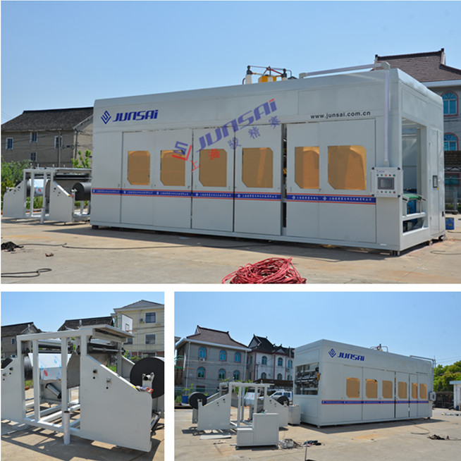 全自動雙層厚片吸塑機系列產(chǎn)品是采用國外技術(shù)及工藝技術(shù),結(jié)合國內(nèi)市場實際需求,研發(fā)生產(chǎn)的新型全自動厚片吸塑設(shè)備,該機采用PLC、觸摸屏自動控制系統(tǒng),模塊控溫系統(tǒng),自動鎖模系統(tǒng),可靠性強,功能性好,自動化程度高,操作簡單,自動對位上料,自動取成品,大大提高了生產(chǎn)效率。加熱系統(tǒng)采用英國鹵素短波加熱器,短波遠紅外加熱器優(yōu)勢;紅外線長波,加熱均勻,滲透性強,反射效果好,加熱速度快(光熱同步),耗能低。